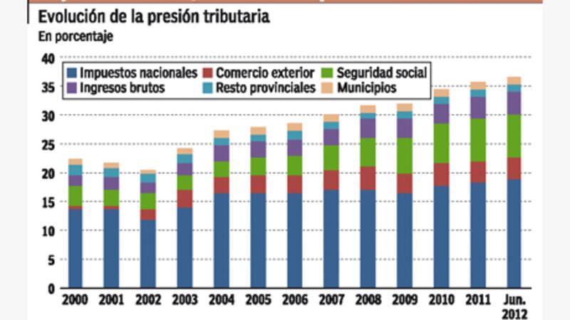 Un reciente informe del Instituto de Análisis Fiscal (Iaraf) indicó que la presión impositiva se incrementó un 50% en una década. Pasó del 22% del PBI en el 2000 a un 34% estimado para 2011, estimó.