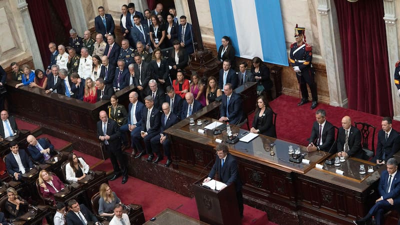 El mandatario llegó cerca de las 21 escoltado por el Regimiento de Granaderos a Caballo desde la Casa Rosada, esta vez fortalecido con un amplio sustento de bancas violetas que hicieron del recinto un festejo partidario y defendieron a Milei de los griteríos opositores. Replicaban, principalmente, con “tobillera, tobillera!”, en relación a la condena de Cristina Fernández de Kirchner.
