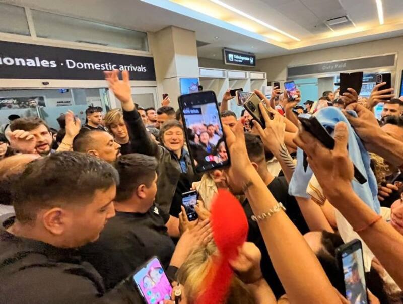 El candidato presidencial llegó a tierras mendocinas este mismo en un vuelo de la aerolínea Flybondi alrededor de las 13 horas. Allí se lo vio con su comitiva, integrada por Sandra Pettovello, Carolina Píparo, el publicista de campaña, Santiago Oría; sus administradores de redes sociales, Iñaki Gutiérrez y Eugenia Rolón; y el responsable financiero de LLA, Iván Dubois.
