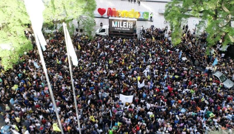 El candidato presidencial de La Libertad Avanza, Javier Milei, realizó hoy una multitudinaria caravana en la ciudad de Mendoza, la cual culminó con un acto en la Plaza Independencia, en donde dijo que terminará con el modelo "socialista" y pidió a sus seguidores que "cuiden los votos" y "fiscalicen". Esta es la última actividad del libertario antes de guardarse para el debate presidencial de este domingo.