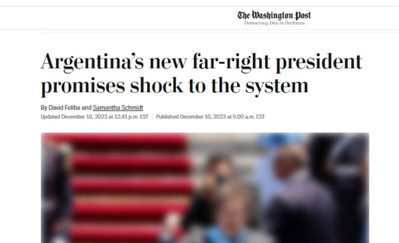 Tras el discurso de Milei, el diario norteamericano tituló: "El nuevo presidente de extrema derecha de Argentina promete un shock al sistema".