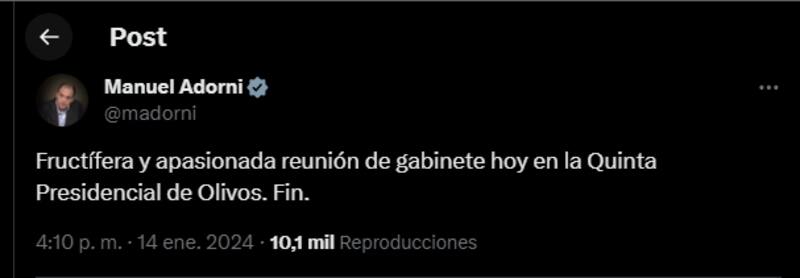 Según especificaron, entre los temas a tratar estuvieron el desembolso del acuerdo con el Fondo Monetario Internacional (FMI), el viaje a Davos, y las medidas que se tratan en Congreso, en relación al DNU y la Ley Ómnibus.