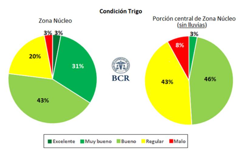 Eugenio Irazuegui, responsable de Research del corredora de granos Enrique Zeni, explicó que el 70 % de las hectáreas están "complicadas" por falta de humedad en los suelos, Sin embargo, la zona más afectada es el centro del país -Córdoba, el sur de Santa Fe y el norte de Buenos Aires - mientras que el centro y sur de Buenos Aires que produce gran cantidad del total nacional de trigo junto con Entre Ríos y Corrientes están mejor posicionados.