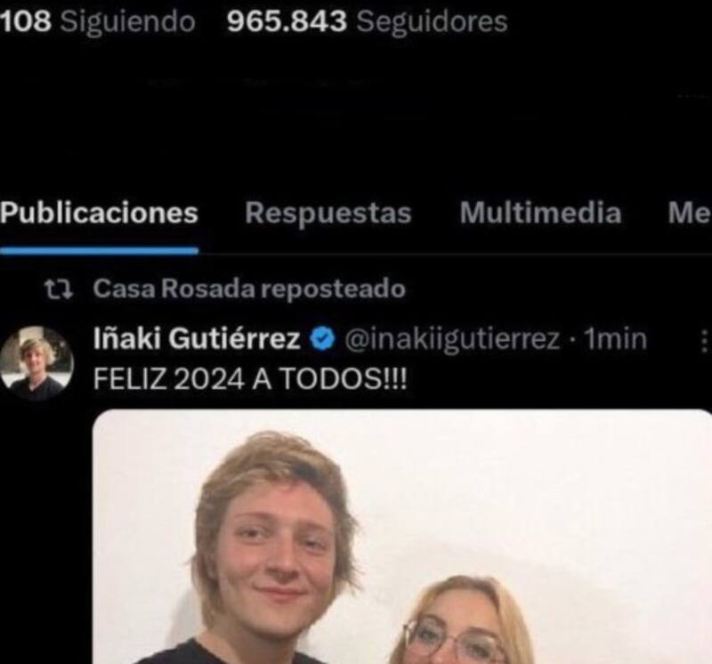 Las horas que circunvalaban al comienzo de 2024 fueron convulsionadas para Gutiérrez, quien ostenta más de medio millón de seguidores en Instagram y casi 300 mil en la red social X. Fue justo en el manejo de la cuenta institucional de la Casa de Gobierno, en donde sin querer -al menos eso elijen creer sus compañeros de trabajo- reposteó una publicación hecha en su cuenta personal.