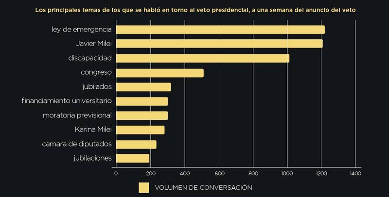 El tema es no es menor. Acorde a un informe de Ad Hoc sobre el termómetro de las redes sociales, la ley de emergencia en discapacidad fue el tema del que más se habló dentro de la conversación sobre los vetos presidenciales, incluso por encima de jubilaciones y financiamiento universitario. Todo esto en un marco de creciente negatividad en el foro digital en torno a la figura del libertario pese a que el volumen de intercambios en torno a su figura es menor en relación a un año atrás.