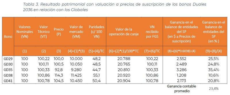 Por ello, continúa, "tanto la venta como el canje de títulos públicos no implicaría una pérdida patrimonial para los organismos públicos alcanzados. Por el contrario, ambas operaciones suponen revalorizaciones patrimoniales al momento de realización".