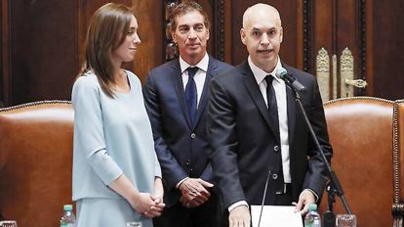 Con los palcos superiores llenos de militantes del PRO, Horacio Rodríguez Larreta y Diego Santilli juraron como jefe y vicejefe de Gobierno en la Legislatura porteña. Mauricio Macri, quien no fue al acto ayer, le entregó después los atributos en la Usina del Arte, en línea con el reclamo que hizo a la presidenta Cristina Fernández para el traspaso nacional.
