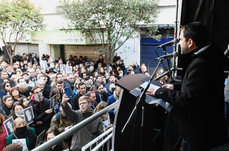 Frente al escenario, que este año se colocó de espaldas a la avenida Córdoba y mirando hacia la avenida Corrientes, se ubicaron los familiares de las víctimas y asistentes al Foro Latinoamericano de Combate al Antisemitismo. El Foro sesionó ayer domingo y continuará hoy con la presencia de Deborah Lipstadt, enviada especial para el Monitoreo y Combate del Antisemitismo del Departamento de Estado de los Estados Unidos; Fernando da Silvia Comim, procurador del Estado de Santa Catarina, Brasil; Daniel Dayan, presidente del Museo del Holocausto; y Fernando Lottenberg, comisionado de la OEA para el monitoreo y la lucha contra el antisemitismo, entre otros.