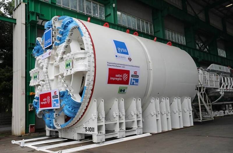 Una de las tuneleras que construirá el emisario que llevará los efluentes 12 km adentro al Río de la Plata.
