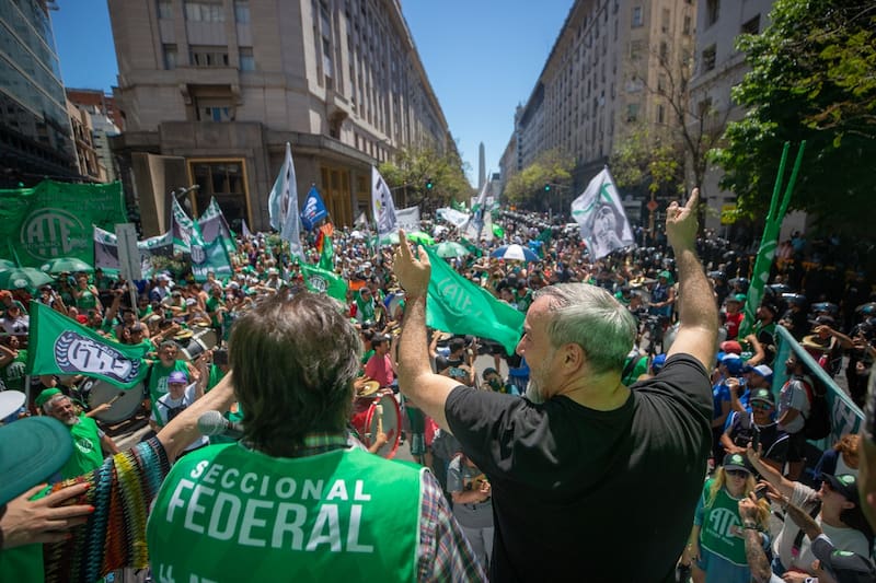 A ellos se les sumaron sindicatos de otras actividades, de los aceiteros a los canillitas pasando por los bancarios, el personal de seguridad (UPSRA), SMATA y la UOM. Incluso los universitarios y las dos CTA, que cada vez actúan más en tándem, se plegaron a la protesta.