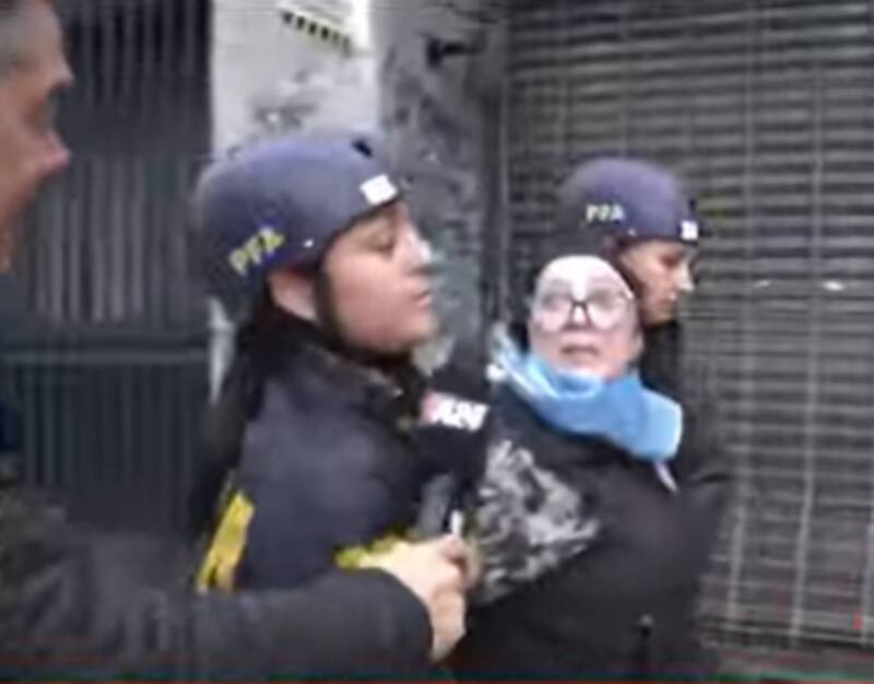 Una de las oficiales heridas recibió el golpe de un objeto contundente arrojado desde un balcón en la intersección de la calle Salta y Avenida de Mayo, quien fue derivada al Hospital Ramos Mejía con diagnóstico "traumatismo de cráneo".