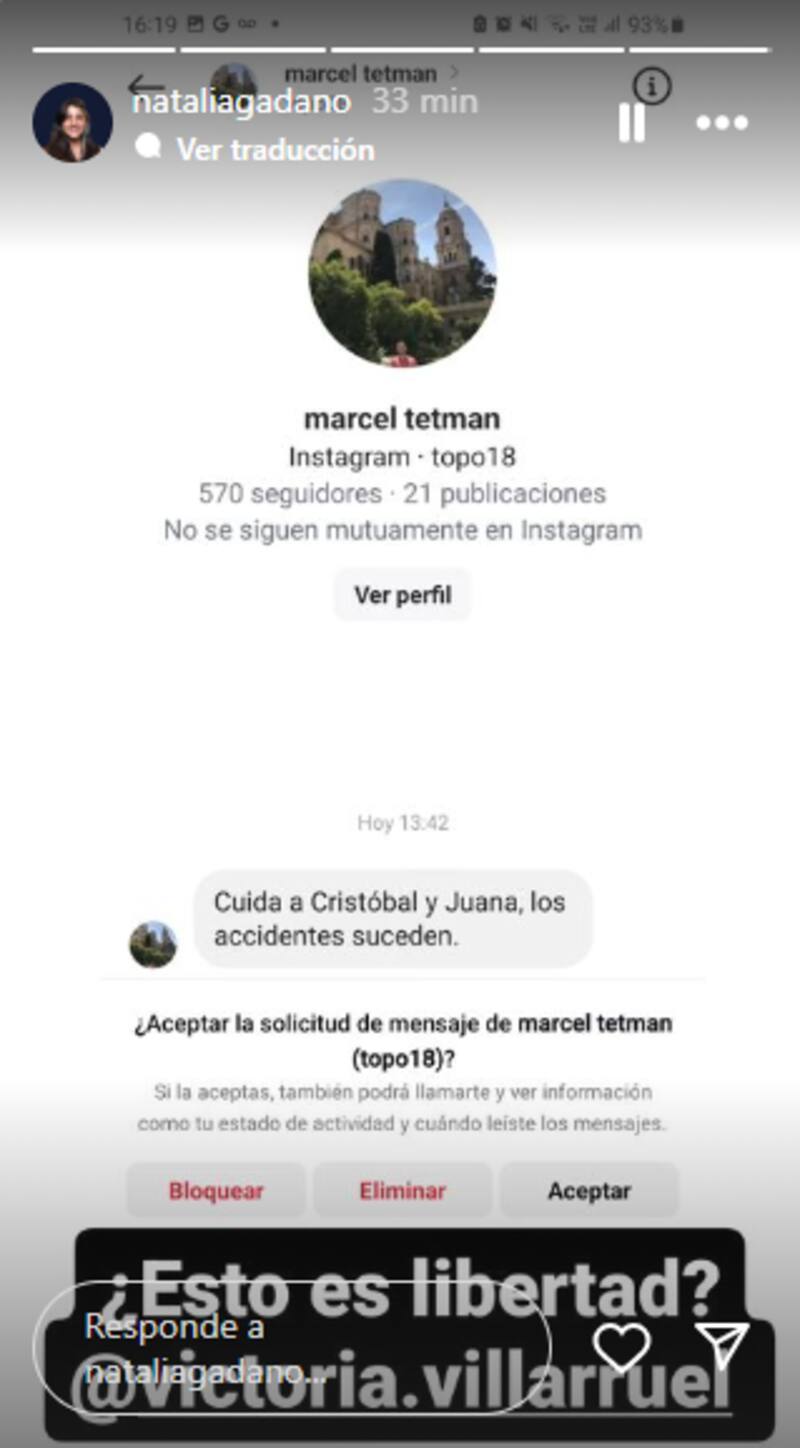 "Cuidá a Cristóbal y Juana, los accidentes suceden" fue el mensaje privado que alguien llamado Marcel Tetman (y cuyo usuario es @topo18) le envió a Gadano.
