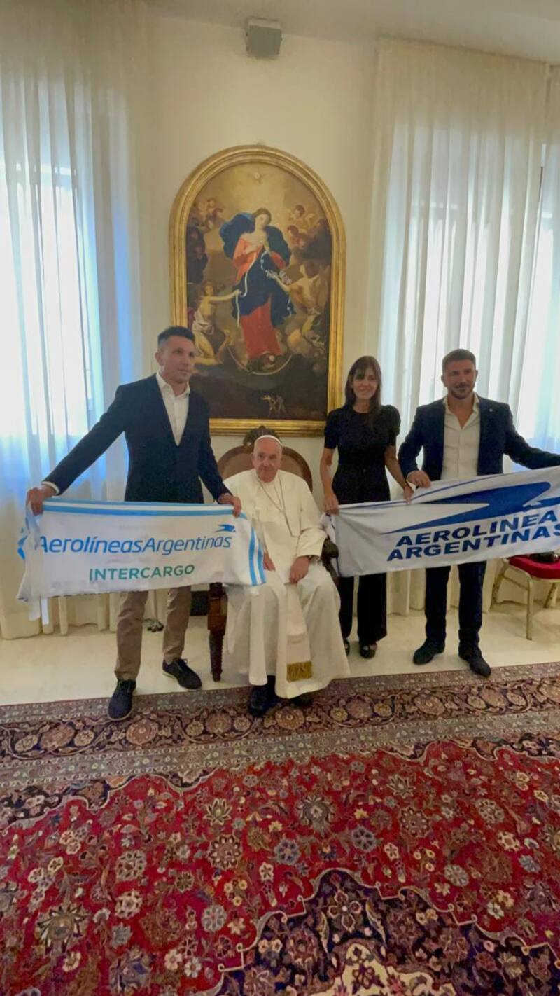 En medio del debate, el Papa Francisco se mostró con una bandera de Aerolíneas