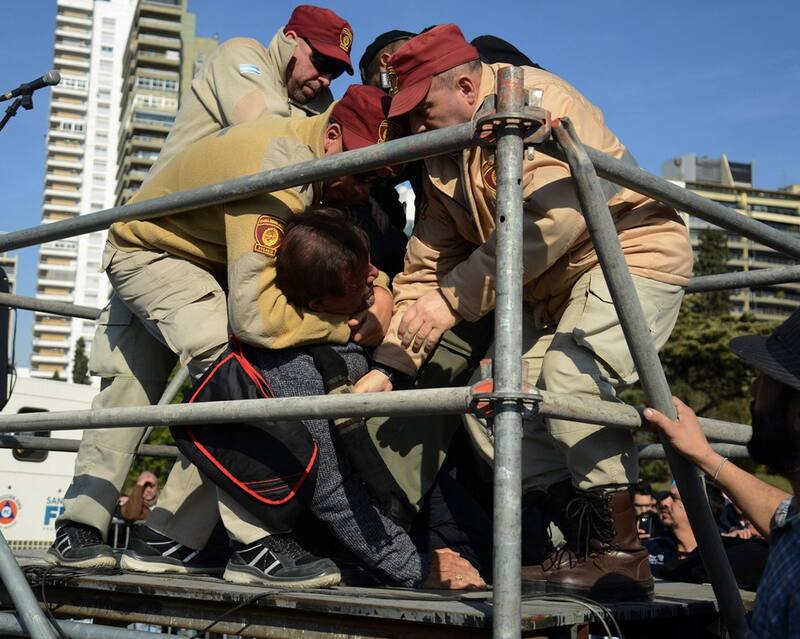 Finalmente fue reducido por agentes de la Guardia Urbana Municipal (GUM) y personal de Gendarmería que custodia el acto y quedó detenido.