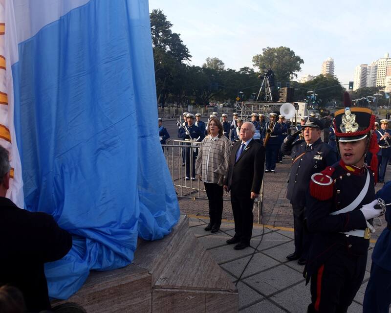 Sin la presencia del Presidente el acto oficial se redujo a un breve discurso de la intendenta Mónica Fein y la jura por parte de estudiantes del Liceo Aeronáutico Militar de Funes.