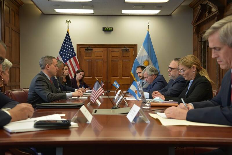 El embajador argentino en Washington, Jorge Argüello -que fue el artífice de esta visita de Kulfas y Filmus- destacó ante El Cronista que "el clima de las reuniones con los funcionarios de Estados Unidos fue muy positivo, se conversó sobre la nueva etapa que abre el acuerdo con el FMI y sobre el deseo de ambas partes de incrementar el comercio y las inversiones, entre otros temas centrales bilaterales del campo comercial bilateral".