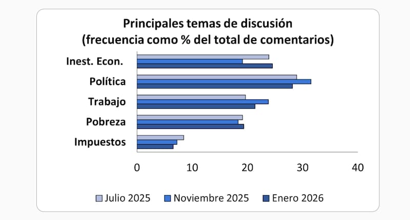 Si bien las discusiones vinculadas a la política redujeron su peso frente a los máximos alcanzados durante la campaña, continuaron siendo el principal eje de la conversación económica, con algo más del 30% del total de los comentarios.