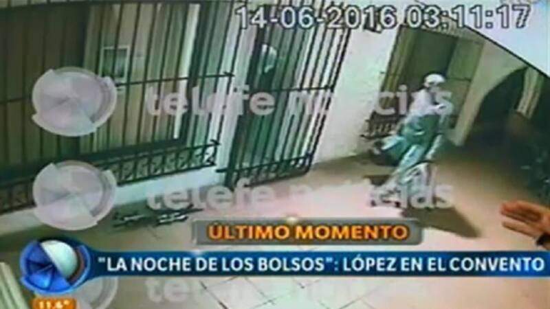 En una secuencia de casi dos horas difundido por Telefé (resumida en algunos pocos minutos), se ve cómo López toca timbre en el convento en el que lo encontró in fraganti la Policía, es atendido por las monjas que allí vivían y ellas son quienes lo reciben y ayudan a ingresar los bolsos adentro del monasterio.