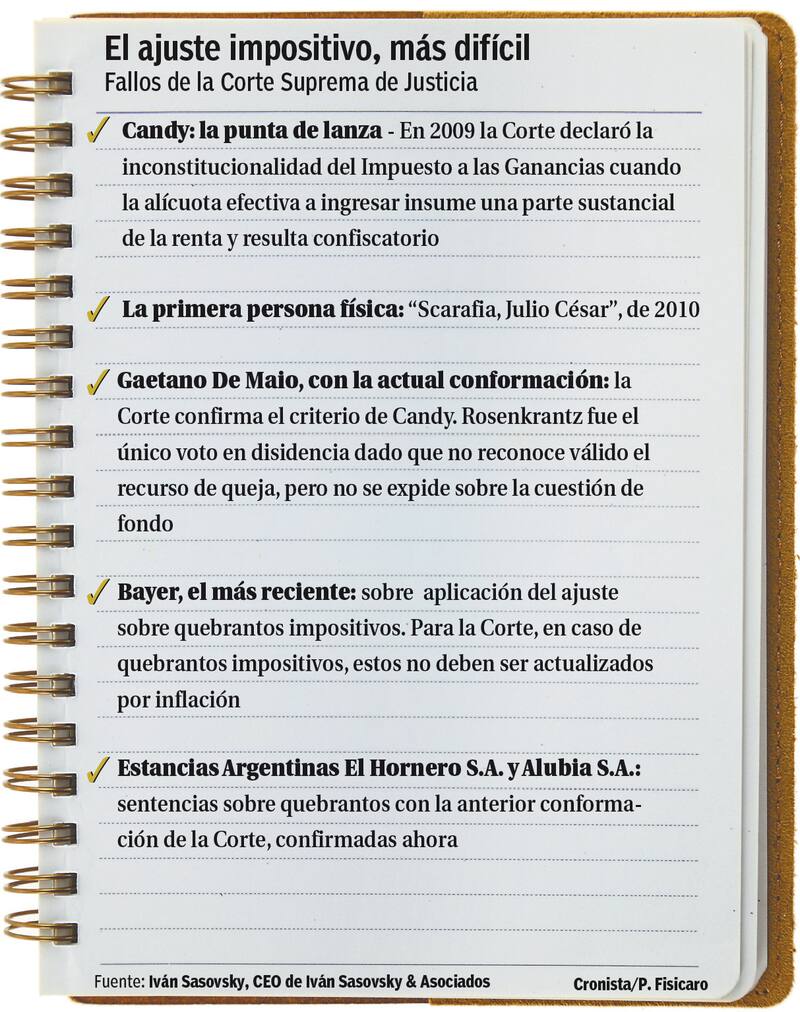 El más reciente fallo de la Corte ya tuvo lugar con la reciente composición del Máximo Tribunal, y versó sobre la aplicación del ajuste por inflación sobre quebrantos impositivos, indicó Iván Sasovsky, del estudio del mismo nombre.