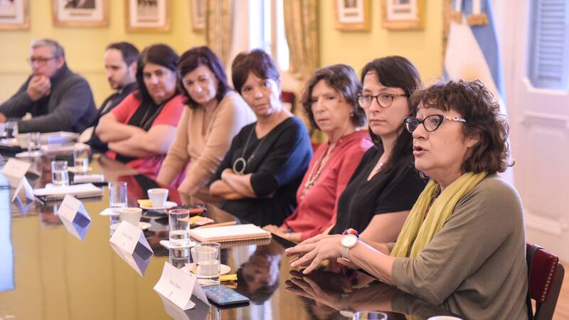 "Los desafíos que plantea la inteligencia artificial para el mundo del trabajo deben ser abordados en forma articulada con políticas públicas", sostuvo la secretaria de Asuntos Estratégicos, Mercedes Marcó del Pont, durante un encuentro con los secretarios generales de la Asociación Bancaria, la FOETRA, el SMATA, la UPCN, el SATSAID, la CTERA y el Sindicato de Seguros. El encuentro celebrado en el Salón de la Ciencia de la Casa Rosada contó con la participación de la ministra de Trabajo y Empleo, Kelly Olmos, que afirmó la necesidad de "trabajar en forma conjunta para diseñar e instrumentar herramientas para que la inteligencia artificial sea una oportunidad de desarrollo". Las autoridades de la Fundación Sadosky realizaron una presentación que permitió dimensionar los desafíos para el mundo del trabajo asociados a la incorporación de las nuevas tecnologías en materia de inteligencia artificial en los procesos productivos.