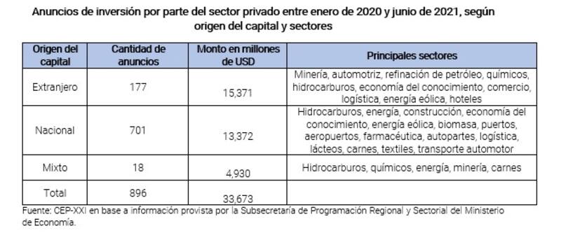 Los datos procesados por el Centro de Estudios para la Producción (CEP) en base a información del ministerio de Economía dan cuenta de inversiones que llegaron a sectores, principalmente, con capacidad exportadora. Avanzaron proyectos en la minería, el sector automotriz, de hidrocarburos, logística, energía eólica, hotelería y de la economía del conocimiento, entre otros.