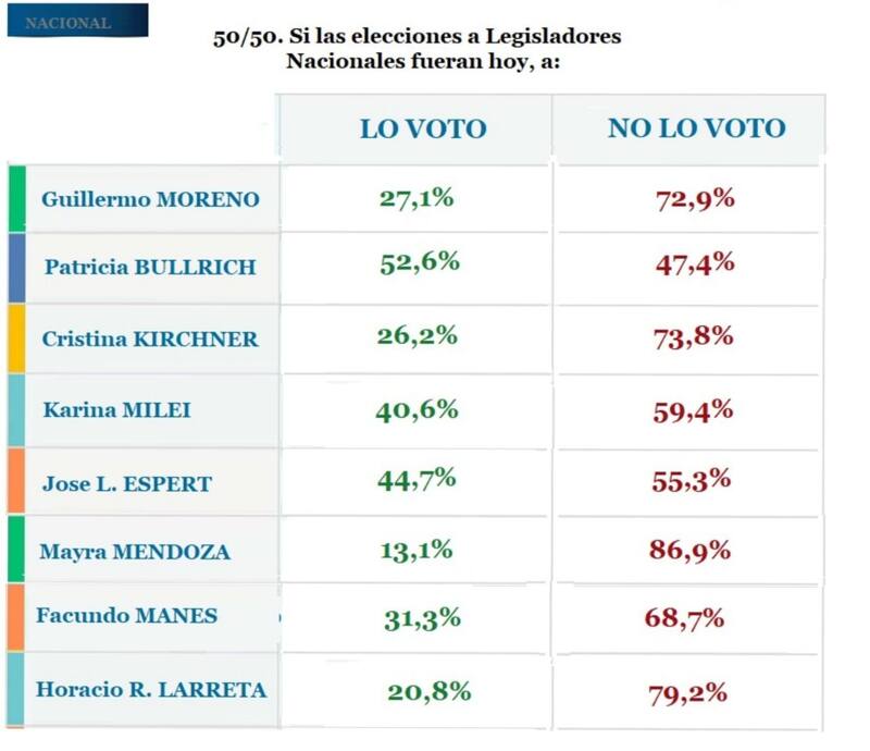 DC Consultores preguntó a los encuestados por la posibilidad de votar o no a ciertas figuras del oficialismo y la oposición en caso de que las elecciones legislativas fueran ahora.