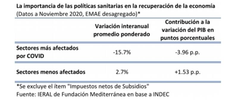 Para Fundación Mediterránea, ese cuarto de la economía más golpeado depende más de la eficacia de las políticas de salud y del avance de la vacunación que de eventuales medidas de estímulo fiscal o monetario.