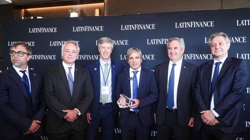 En el evento, donde el CEO de LatinFinance Taimur Ahmad le entregó el galardón por la hoja de ruta que trazó el ministro aunque reconoció que la economía está cayendo, Caputo estuvo acompañado por el presidente del Banco Central Santiago Bausili, el vice Vlademir Werning, el director del BCRA Federico Furiase, el viceministro de Economía José Luis Daza y la subsecretaria de Coordinación Internacional Candelaria Álvarez Moroni.