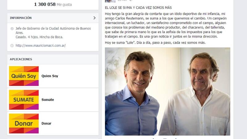 Reutemann se reunió con Macri el último jueves en las oficinas porteñas del PRO y allí cerraron el acuerdo que se confirmó este sábado, con el mensaje de Facebook en el que el líder del PRO se refirió al senador como su “amigo” e “ídolo deportivo de la infancia”.