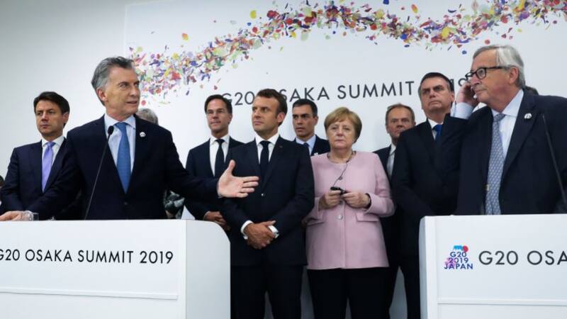 A poco de finalizar la cumbre de países miembros del G20, en Osaka, Japón, acompañado por el presidente de Brasil, Jair Bolsonaro, y rodeado por los máximos líderes europeos, Macri agradeció a todos los jefes de Estado “por el esfuerzo comprometido .