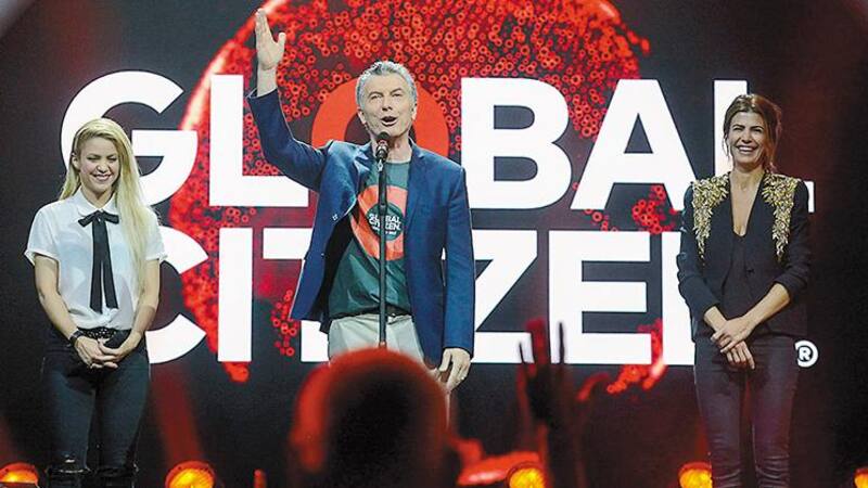 Acompañado por su esposa Juliana Awada, Macri compartió escenario con Shakira, quien le entregó la bandera del Global Citizen, que representa el pase del legado para la presidencia del G-20 que Argentina asumirá en 2018. Macri dijo que "sólo trabajando todos los países juntos" será posible "alcanzar la paz", poner "fin a la pobreza" y revertir los efectos del "cambio climático".