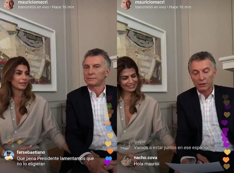Julian Awada y Mauricio Macri durante la transmisión en vivo.