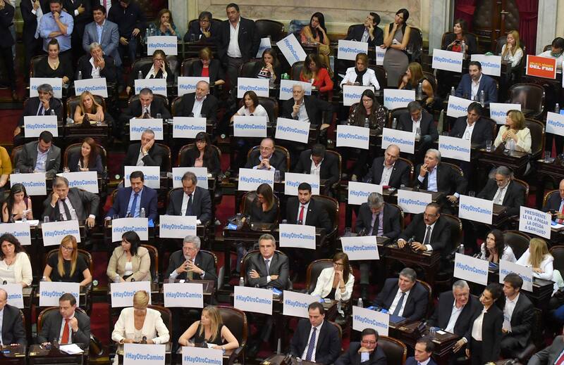 Inmediatamente comenzaron las quejas y reclamos desde la banca del Frente para la Victoria con su presidente, el diputado Agustín Rossi, reclamando por insultos que se escuchaban desde las gradas. “Los gritos y los insultos no hablan de mi, señores, hablan de ustedes , contestó Macri.