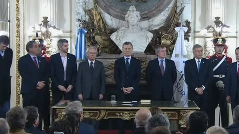 El presidente Mauricio Macri puso en funciones esta mañana a los nuevos ministros de Educación y de Defensa, Alejandro Finocchiaro y Oscar Aguad, respectivamente, que reemplazan en sus cargos a Esteban Bullrich y Julio Martínez, candidatos a legisladores nacionales por Cambiemos.