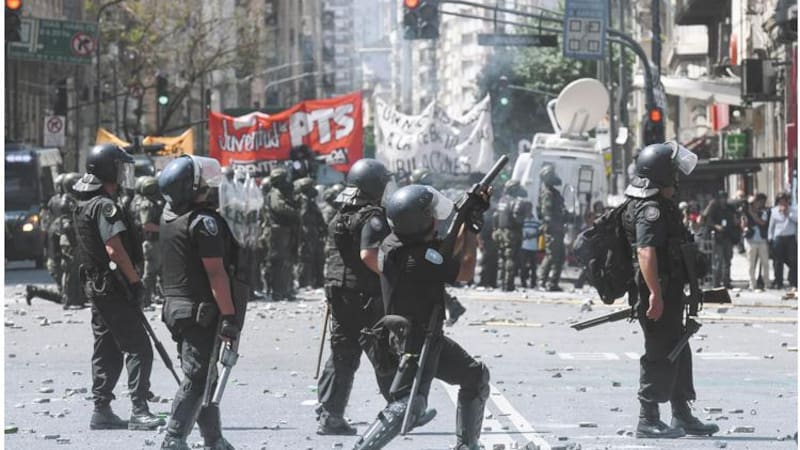 También el fotoreportero Pablo Piovano, de Página/12, recibió una decena de disparos de balas de goma y perdigones en el torso y debió ser atendido. Los militantes del Partido Obrero, el MST, el Nuevo MAS; la Federación Universitaria de Buenos Aires (FUBA), la Coordinadora Contra la Represión Policial e Institucional (Correpi) y representantes de algunos gremios, como los ferroviarios y trabajadores de la televisión, entonaron durante la tarde cantos de repudio al Gobierno por entender que la reforma previsional toca el poder adquisitivo de los jubilados, y también cargaron contra la Confederación General del Trabajo (CGT), que no se vio representada en la Plaza del Congreso.
