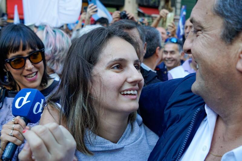 "¿Dónde está Toto?" preguntaba Galmarini buscándolo con la mirada mientras Massa se tomaba una selfie detrás de la otra y abrazaba alternativamente a su mujer y a su hija. "Vine como papá" repetía por décima vez en medio de la columna de jóvenes y dirigentes que cantaban consignas peronistas.