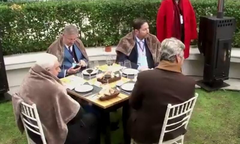 Entre el selecto grupo de quienes se acercaron a los jardines del Four Seasons estuvieron presentes Javier Bolzico de Adeba, Adelmo Gabbi de la Bolsa de Comercio, Mario Grinman por la Cámara de Comercio, Iván Szezech de Construcción y Nicolás Pino, flamante presidente de la Sociedad Rural, entre otros. Paliaron el frío entre calentadores externos y empanadas.