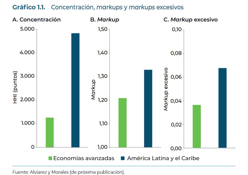 Esta falta de rivalidad permite que las empresas operen con mark-ups (márgenes de precio sobre costos) un 15% más altos que en los países avanzados.