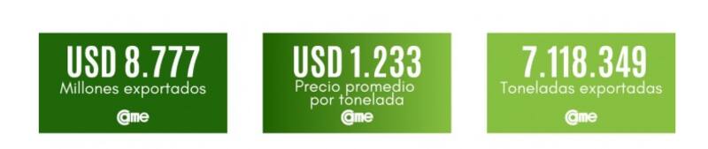 En volumen, alcanzó 162.582 toneladas, un incremento del 151,5%, con un precio promedio de u$s 1.220,3 por tonelada, un 3,1% más que el año anterior.