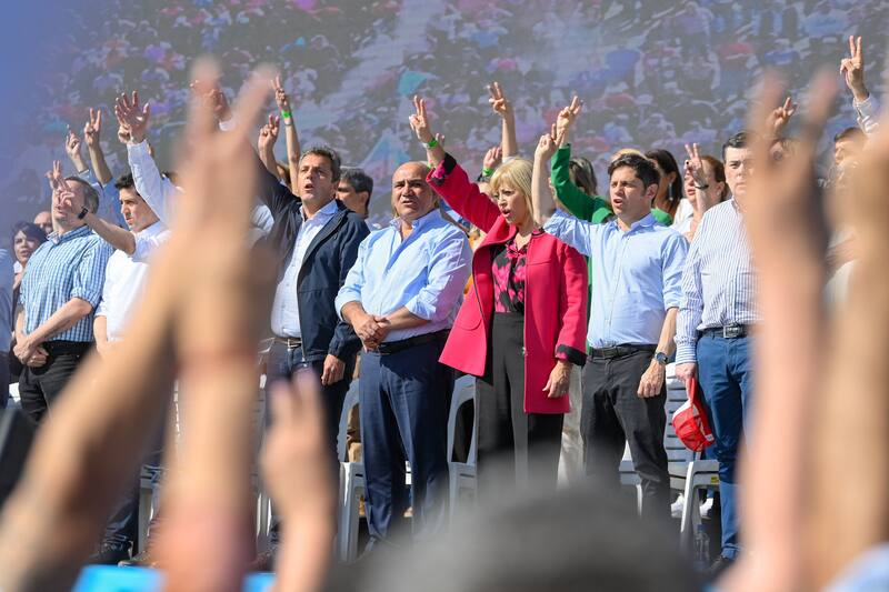Hubo otras señales: la apertura fue con "Muchachos" la canción dedicada a la Selección que dice que "nos volvimos a ilusionar" y terminó con la marcha peronista que cantó a viva voz Kicillof. Massa se sacó fotos con la bandera de la UOCRA, gremio al que suele reivindicar y cuyo secretario general, Gerardo Martínez, estuvo en Tucumán. No fue azaroso: el constructor se juntó días atrás con Javier Milei. El libertario le había pedido conversar sobre el seguro de desempleo del gremio.