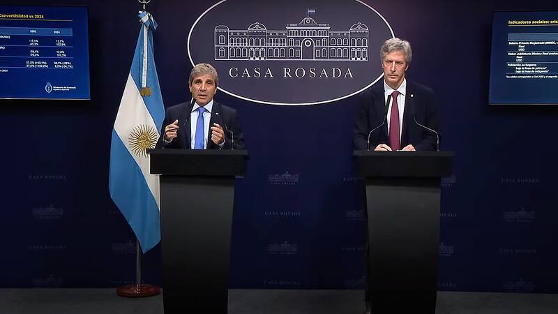 "Vamos a implementar una ajuste adicional del 0,3% del PBI para lo que resta del 2025", expresó Caputo. El ministro anualiza esa corrección y la lleva al 0,5% anualizado.