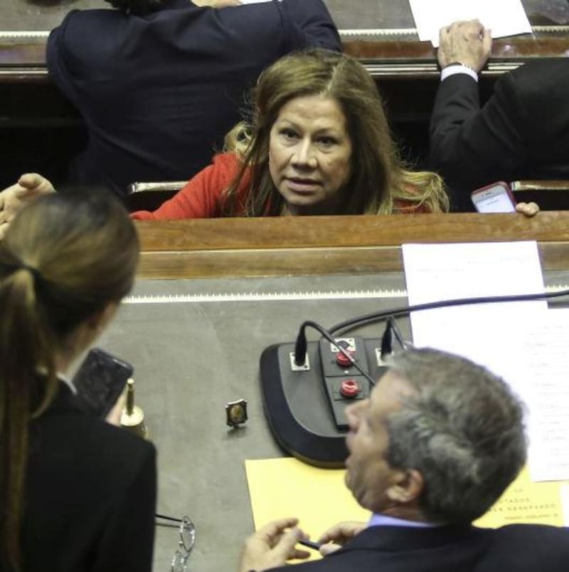 Graciela Camaño habla con el presidente de la Cámara, Emilio Monzó, durante la sesión.