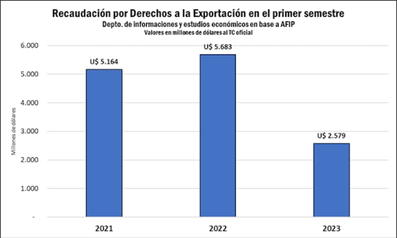 En la primera mitad de 2023, se recaudaron $571.395 millones de pesos por este concepto, un 10% por debajo del año pasado en pesos corrientes y 50% por detrás del año previo medido en dólares estadounidenses, según información de AFIP.