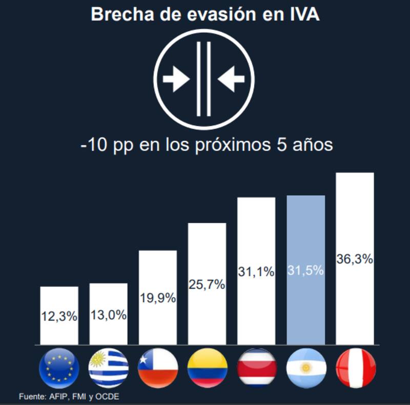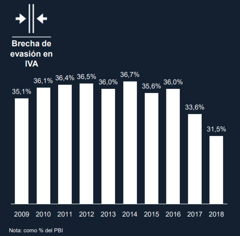 Entre los logros, la Administración Federal de Ingresos Públicos destacó en particular la reducción en la evasión del IVA como porcentaje del PBI -el impuesto que más aporta a la recaudación-, que cayó cuatro puntos al pasar del 35,6% en 2015 hasta el 31,5% en 2018. Aún así, se trata de uno de los ratios de evasión más altos de la región.