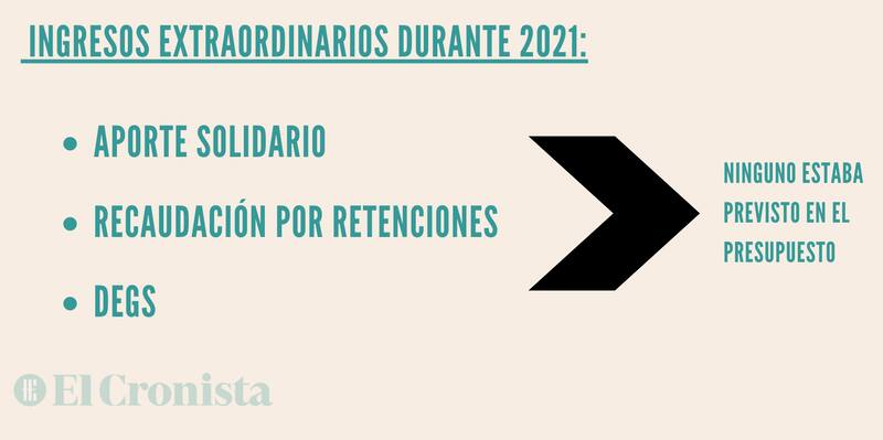 El Presupuesto 2021 sostiene que el déficit primario de este año será de 4,5% del PIB. Aunque en las semanas previas a las elecciones se acelera el gasto, el Gobierno sobrecumplirá la meta -quedaría por debajo del 4%- gracias a la mejora de los precios internacionales, la llegada de los 3.055 millones de Derechos Especiales de Giro (DEG) que envió el FMI, y el ingreso por el Aporte Solidario.