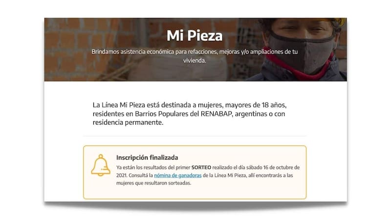 El Ministerio de Desarrollo Social dispone de un canal oficial de consulta para chequear la participación del próximo sorteo del programa Mi Pieza 2023, pautado para el jueves 21.