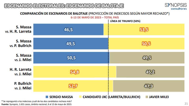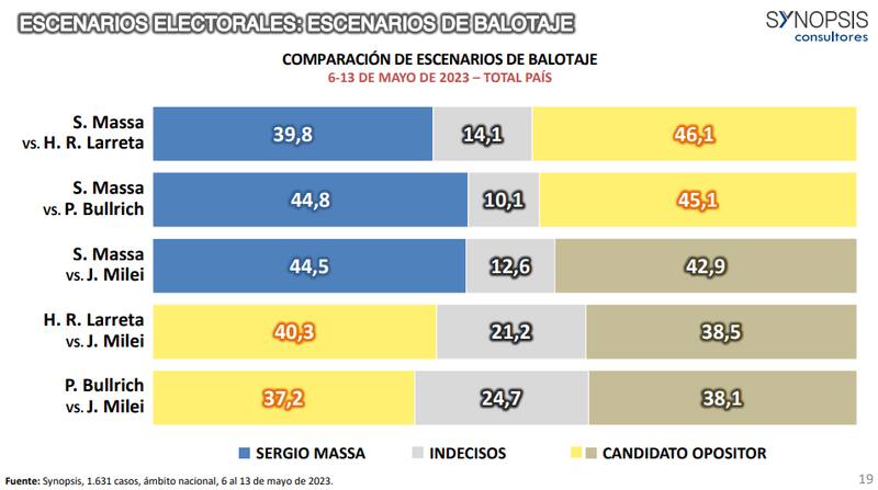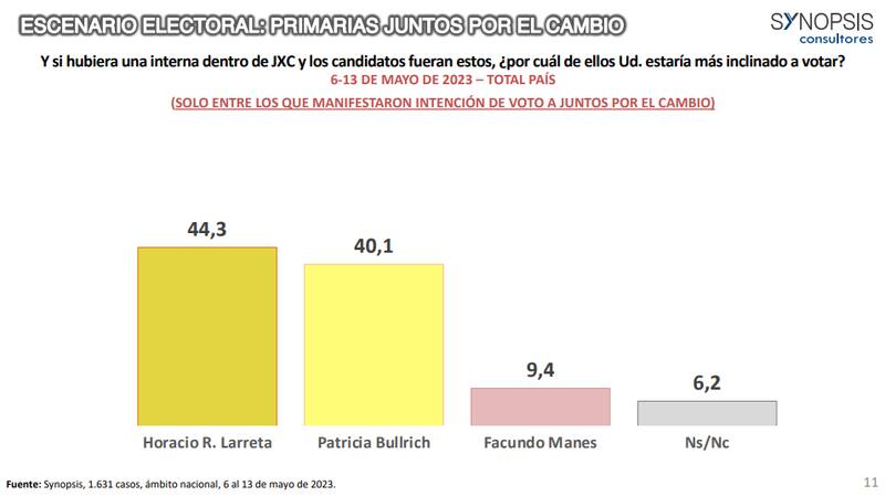 Una encuesta de la consultora Synopsis otorgó un panorama al respecto de las elecciones 2023, tanto para el conjunto de los partidos como de la disputa que se libra hacia el interior de Juntos por el Cambio y, en particular, entre Horacio Rodríguez Larreta y Patricia Bullrich.