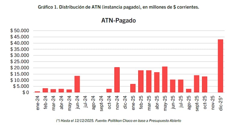 El mes con el mayor monto pagado había sido mayo con $ 21.000 millones totales, por lo cual el parcial pagado de diciembre ya supera con creces ese nivel, siendo mes récord de distribución de ATN no solo para este 2025 sino para toda la era Milei.