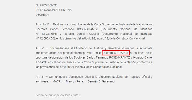 La decisión saldrá este miércoles en el Boletín Oficial a través de un decreto simple firmado por el Presidente y algunos de sus ministros. Según dijeron fuentes inobjetables de la Casa Rosada, el documento será largo y constará de "todos los fundamentos jurídicos que avalan el nombramiento bajo esta vía".