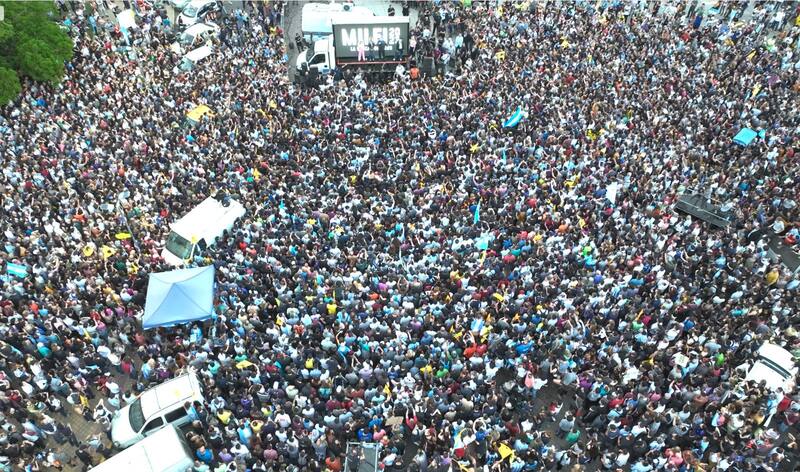 El candidato presidencial de La Libertad Avanza,Javier Milei, realizó en la tarde de ayer una caravana masiva en la ciudad de Rosario, que culminó en un acto en frente del Monumento a la Bandera, en donde cruzó en duros términos a su rival electoral de Unión por la Patria, Sergio Massa: "¿De qué miedo hablamos si tenemos más del 40% de pobres?". Asimismo, apeló a sus seguidores a que militen su voto frente a los indecisos.